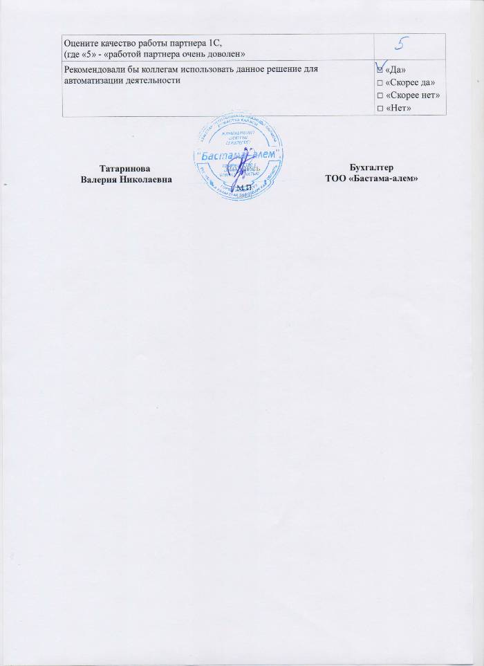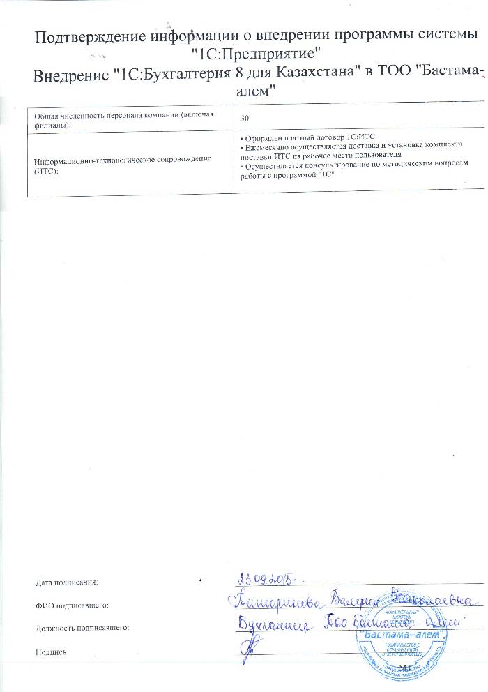 | Внедренное типовое решение: | 1С:Бухгалтерия для Казахстана |