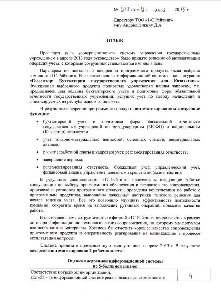 | Внедренное отраслевое решение: | Госсектор: Бухгалтерия государственного учреждения для Казахстана |