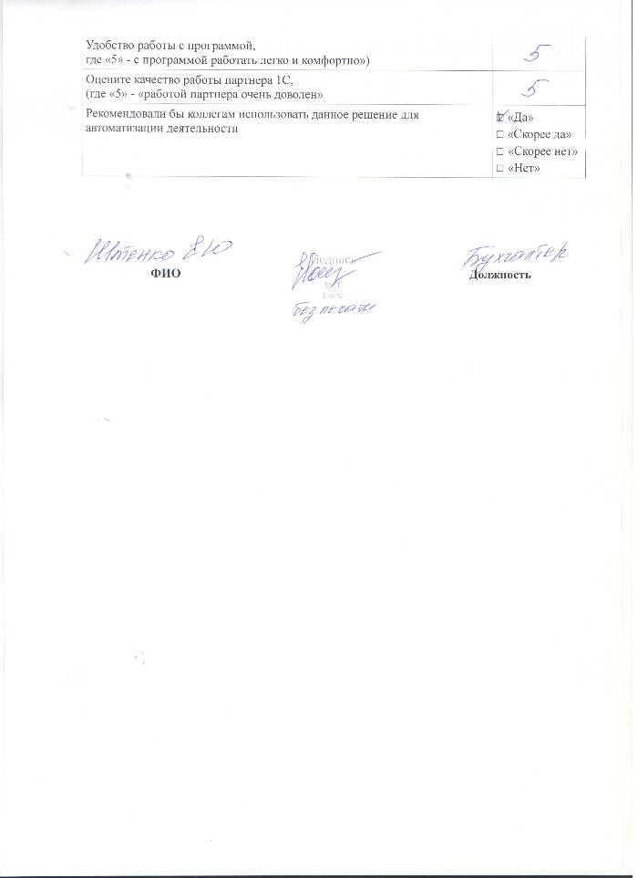 - Осуществляется консультирование по методическим вопросам работы с программой 1С