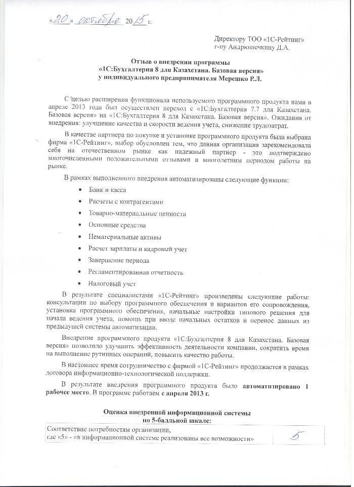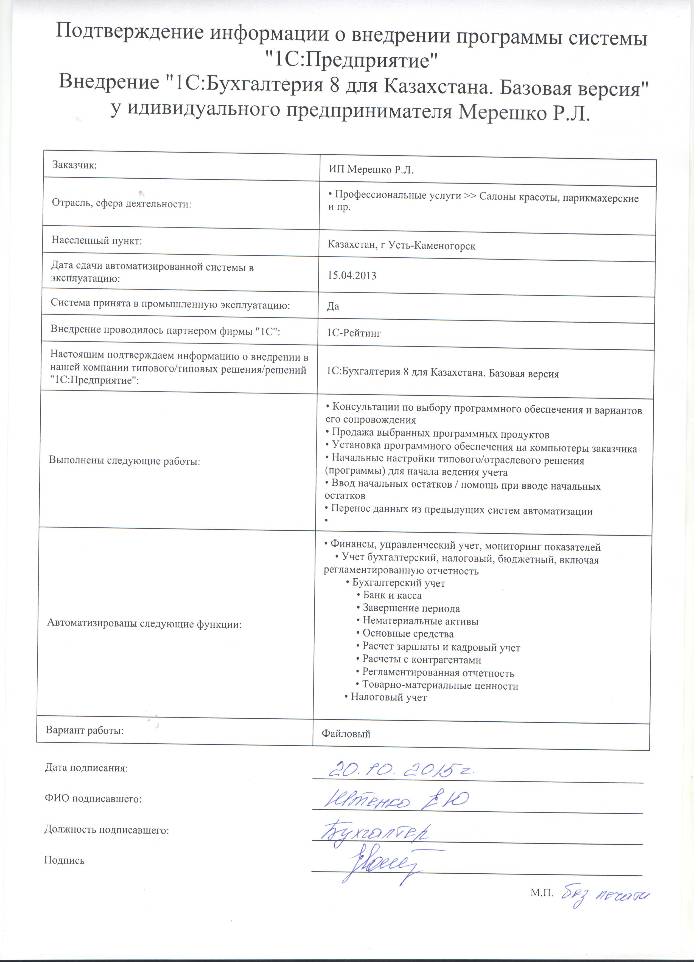| Внедренное типовое решение: | 1С:Бухгалтерия 8 для Казахстана. Базовая версия |
