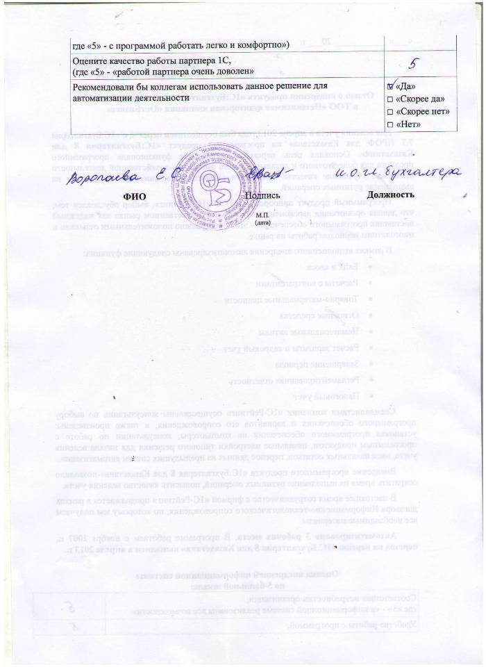- Осуществляется консультирование по методическим вопросам работы с программой 1С