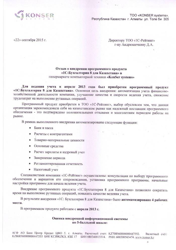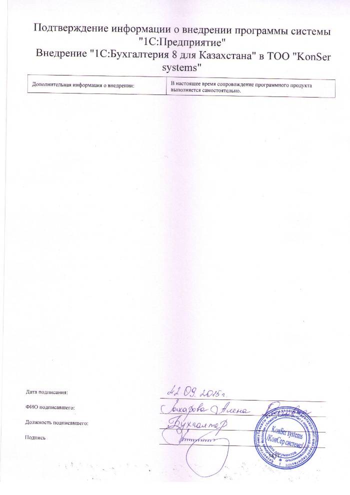 Внедрение 1С:Бухгалтерия 8 для Казахстана в ТОО KonSer systems