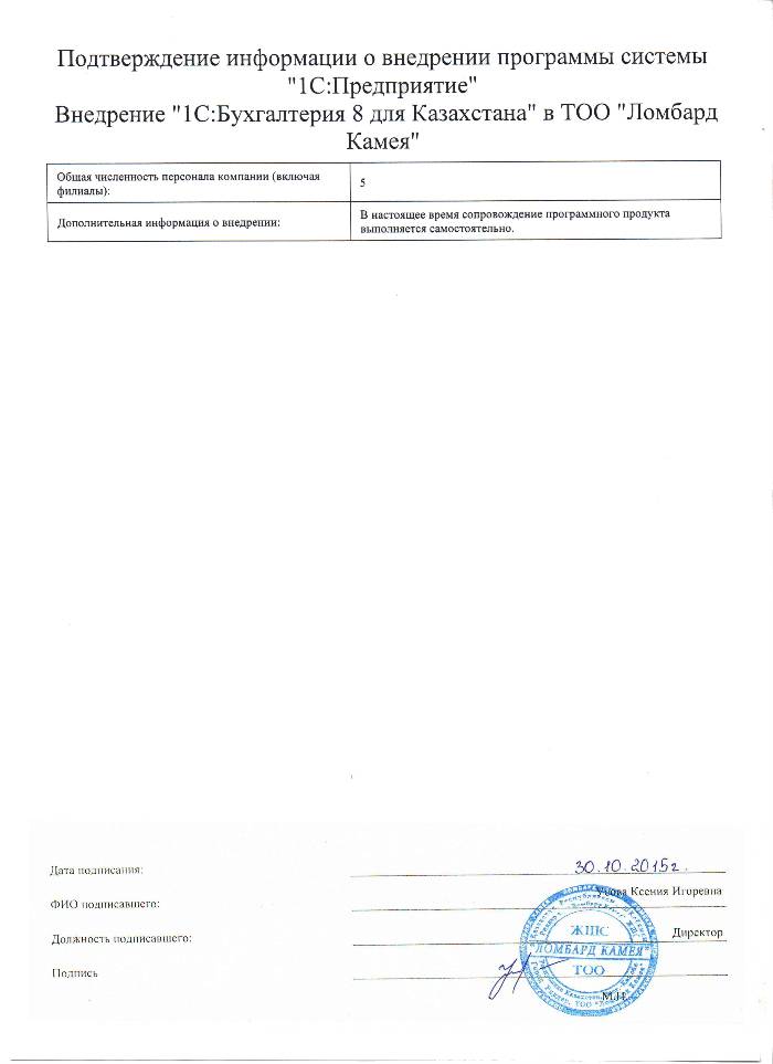 | Внедренное типовое решение: | 1С:Бухгалтерия 8 для Казахстана |