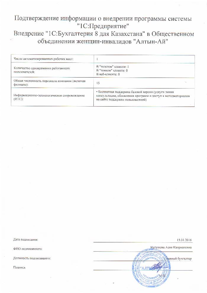 | Внедренное типовое решение: | 1С:Бухгалтерия 8 для Казахстана. Базовая версия |