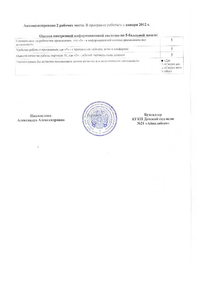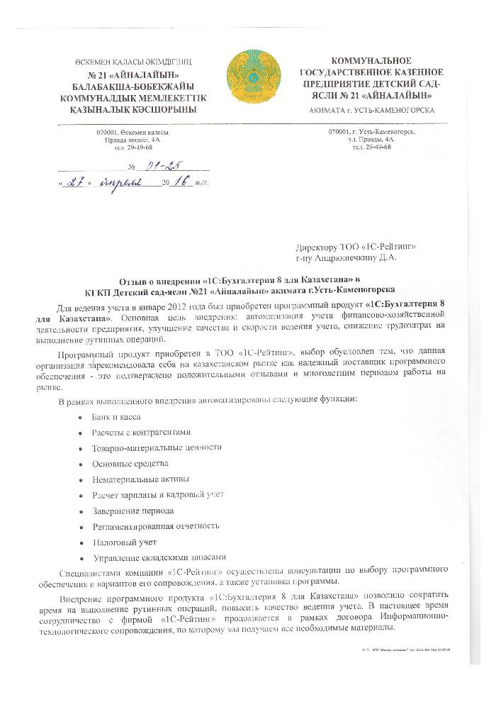 | Внедренное типовое решение: | 1С:Бухгалтерия 8 для Казахстана |