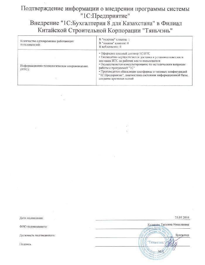 | Внедренное типовое решение: | 1С:Бухгалтерия 8 для Казахстана |