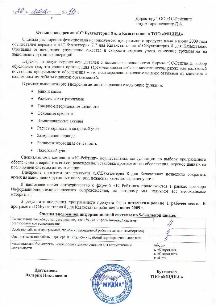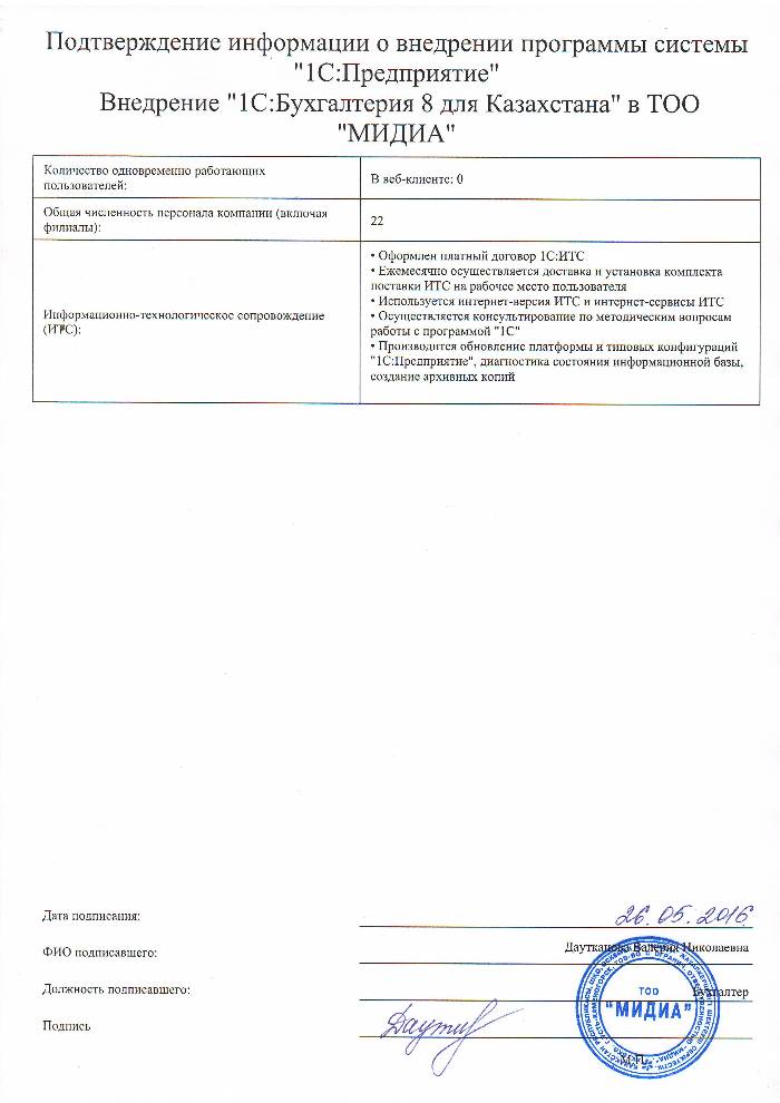 Внедрение 1С:Бухгалтерия 8 для Казахстана в ТОО МИДИА
