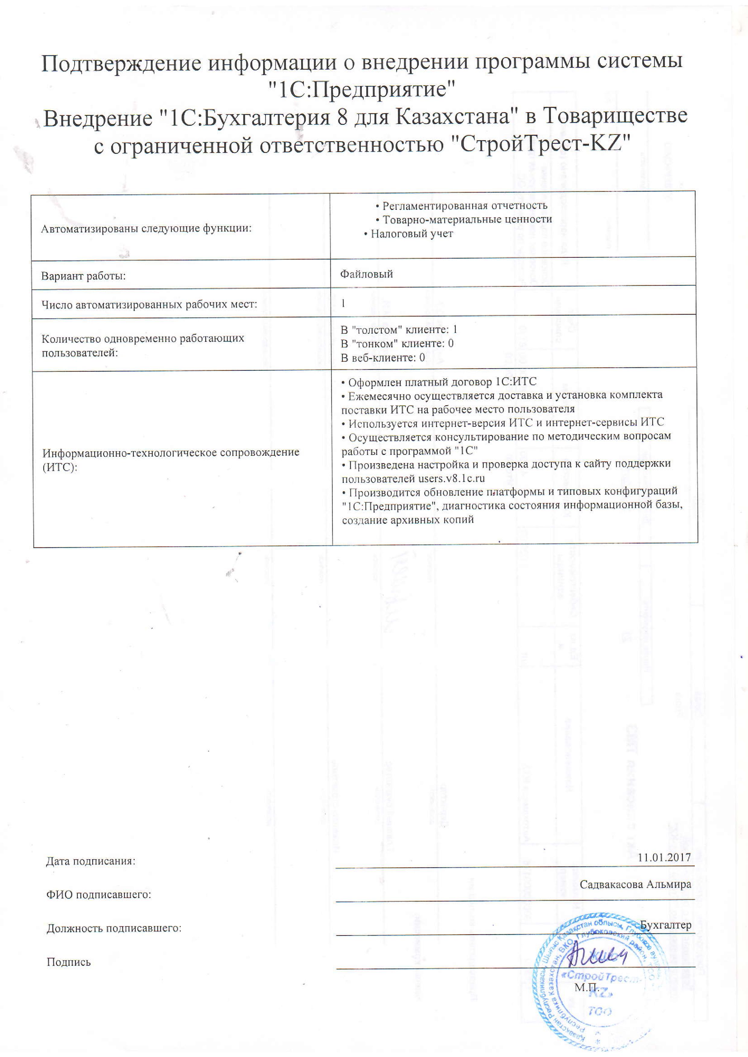 Внедрение «1С:Бухгалтерия 8 для Казахстана» в ТОО «СтройТрест-KZ»