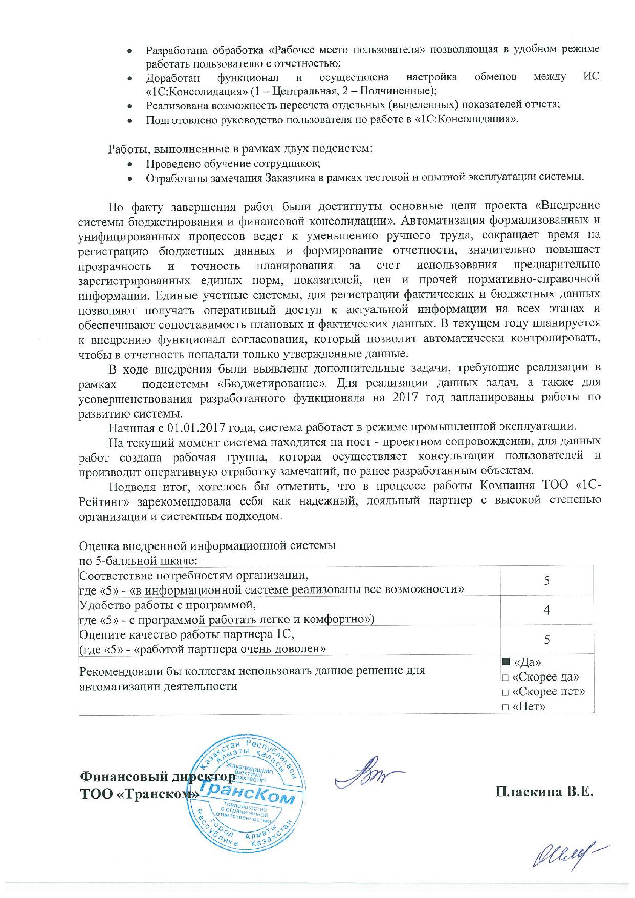 По факту завершения работ были достигнуты основные цели проекта «Внедрение системы бюджетирования и финансовой консолидации».
