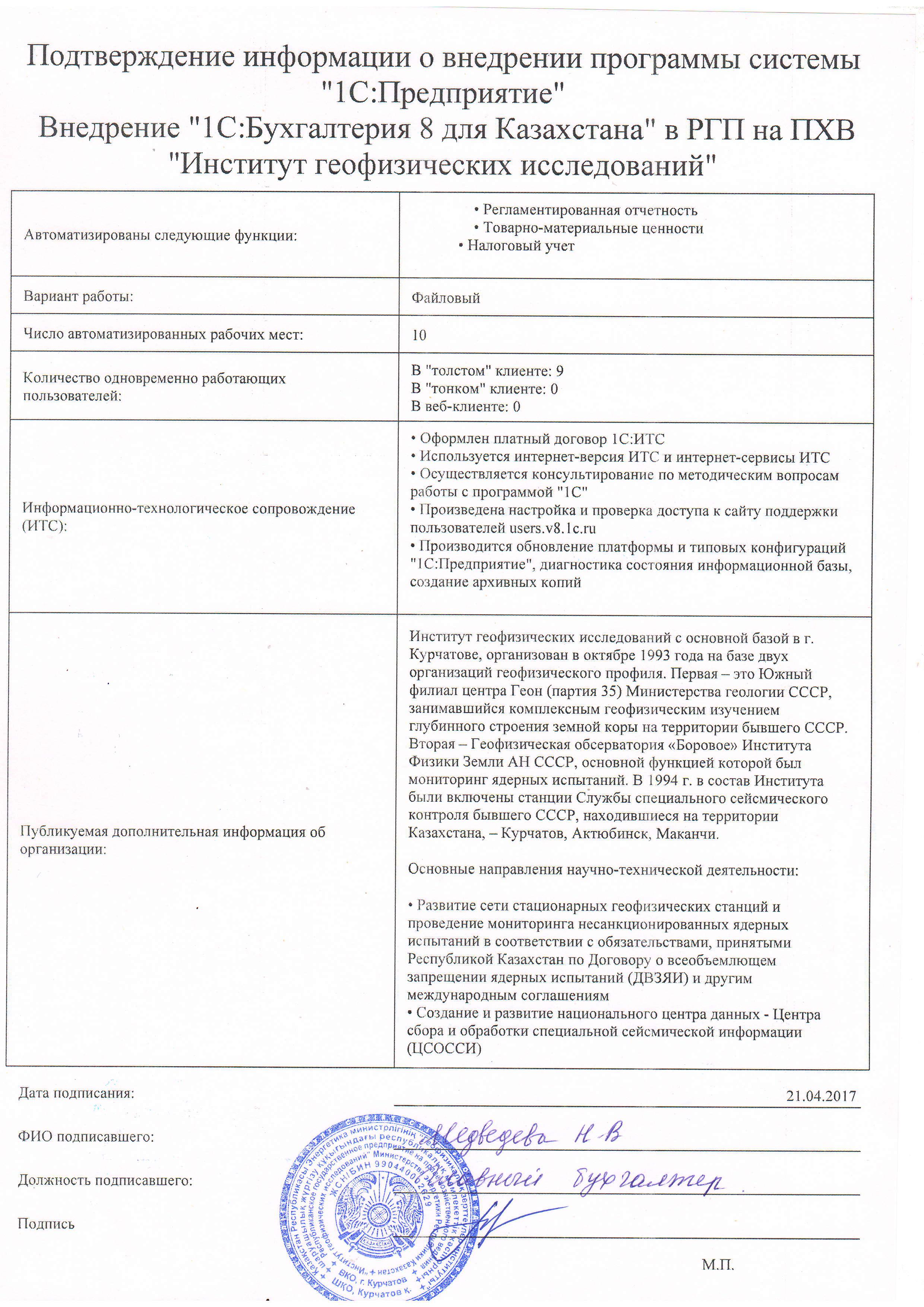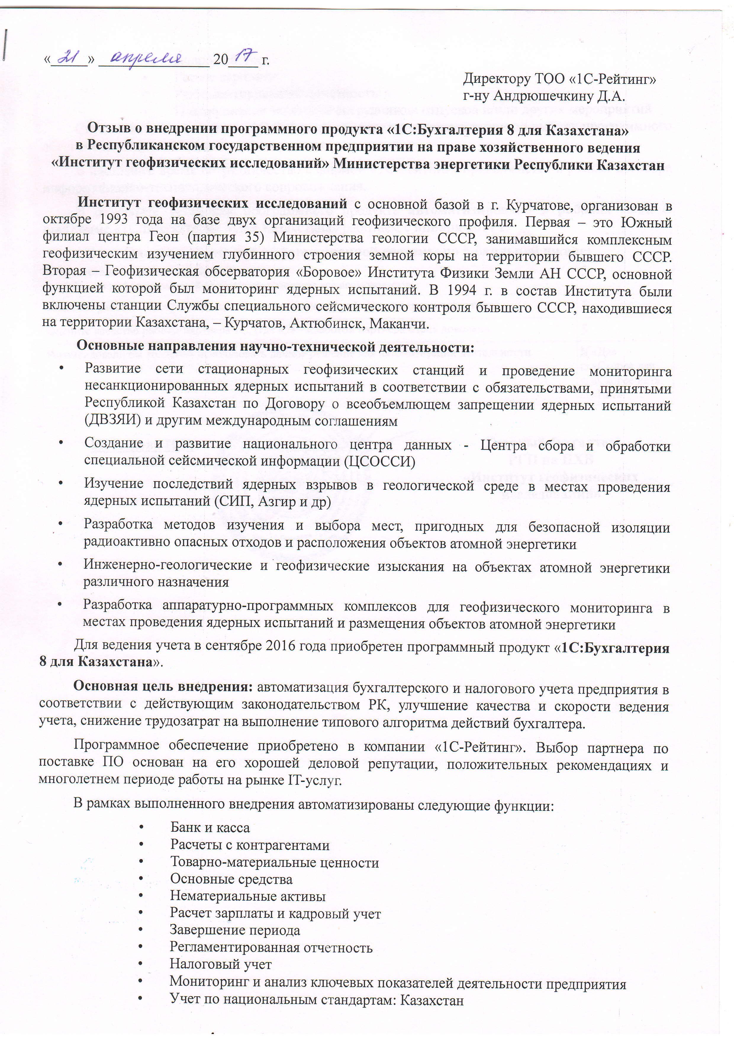 РГП на ПХВ «Институт геофизических исследований» Министерства энергетики Республики Казахстан
