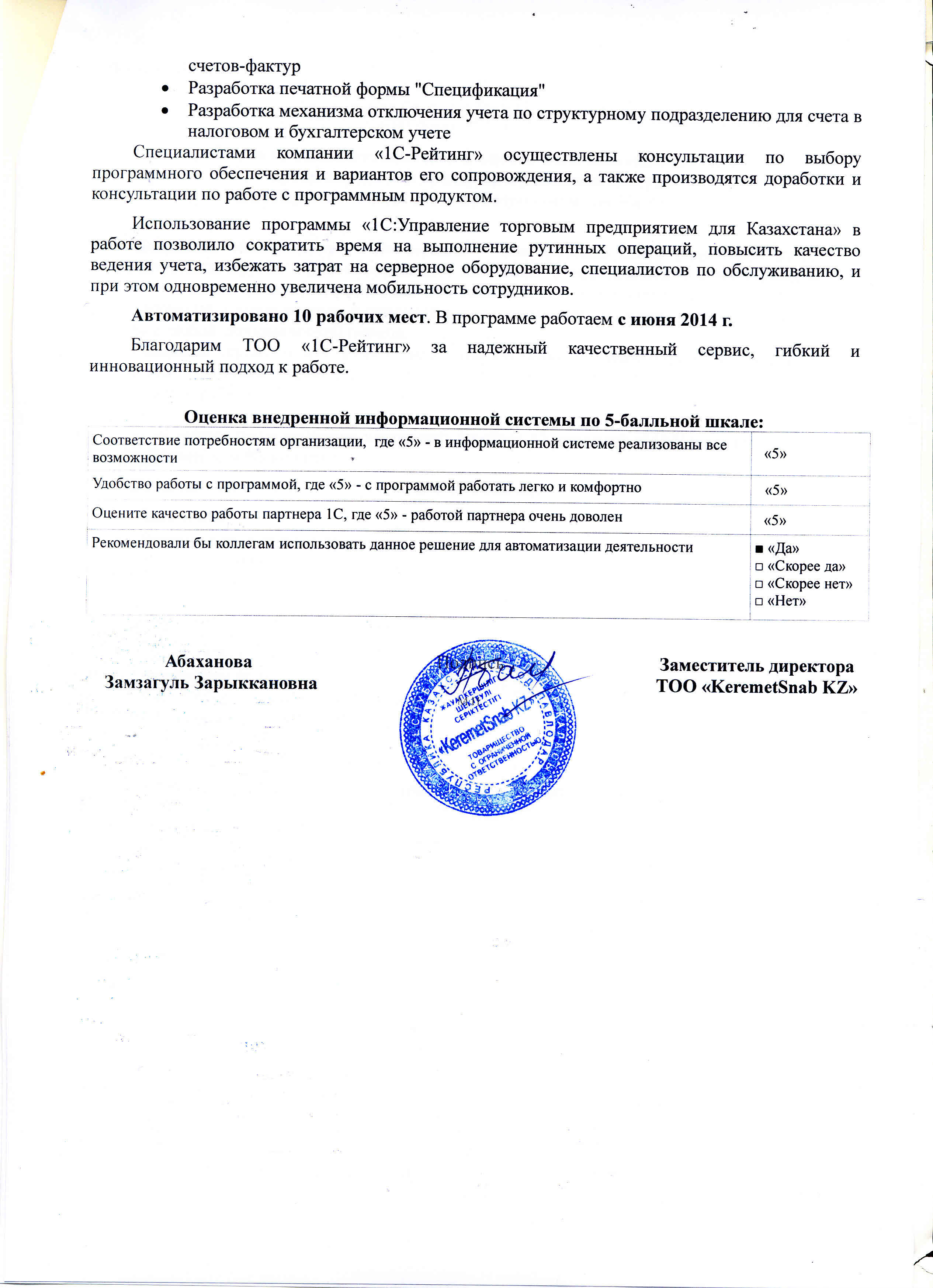 | Арендованное типовое решение: | 1С:Управление торговым предприятием для Казахстана |