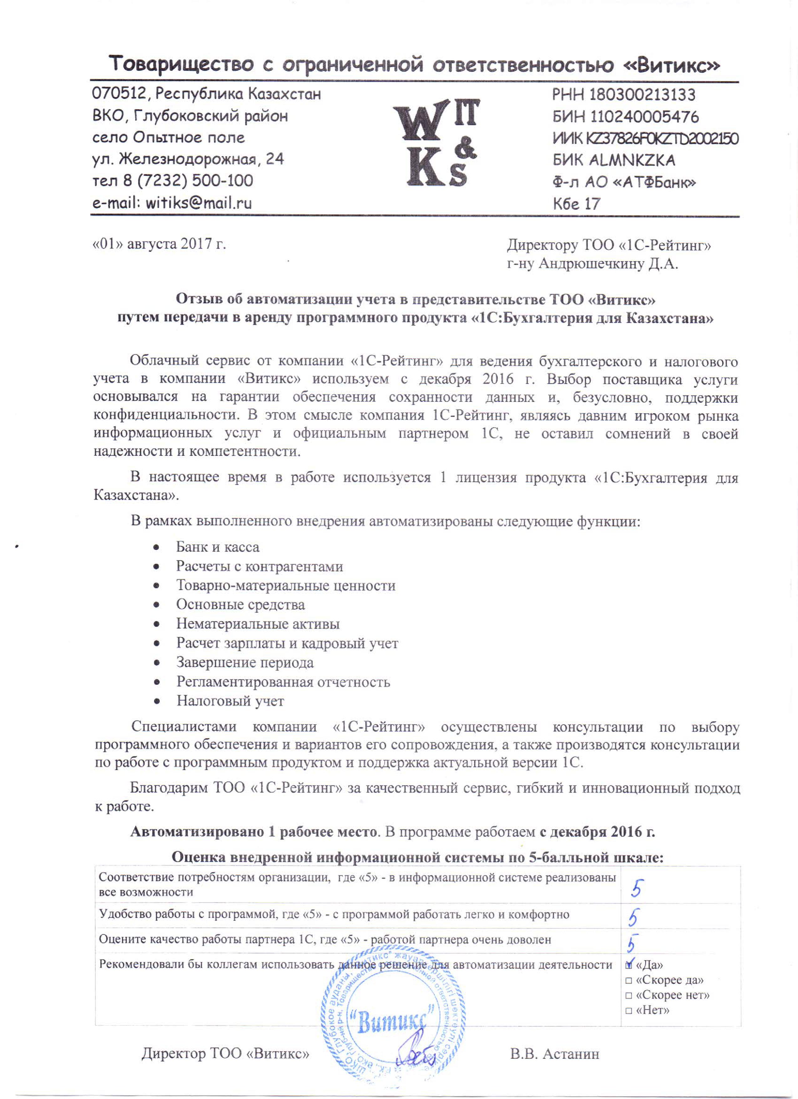 | Арендованное типовое решение: | 1С:Бухгалтерия для Казахстана |