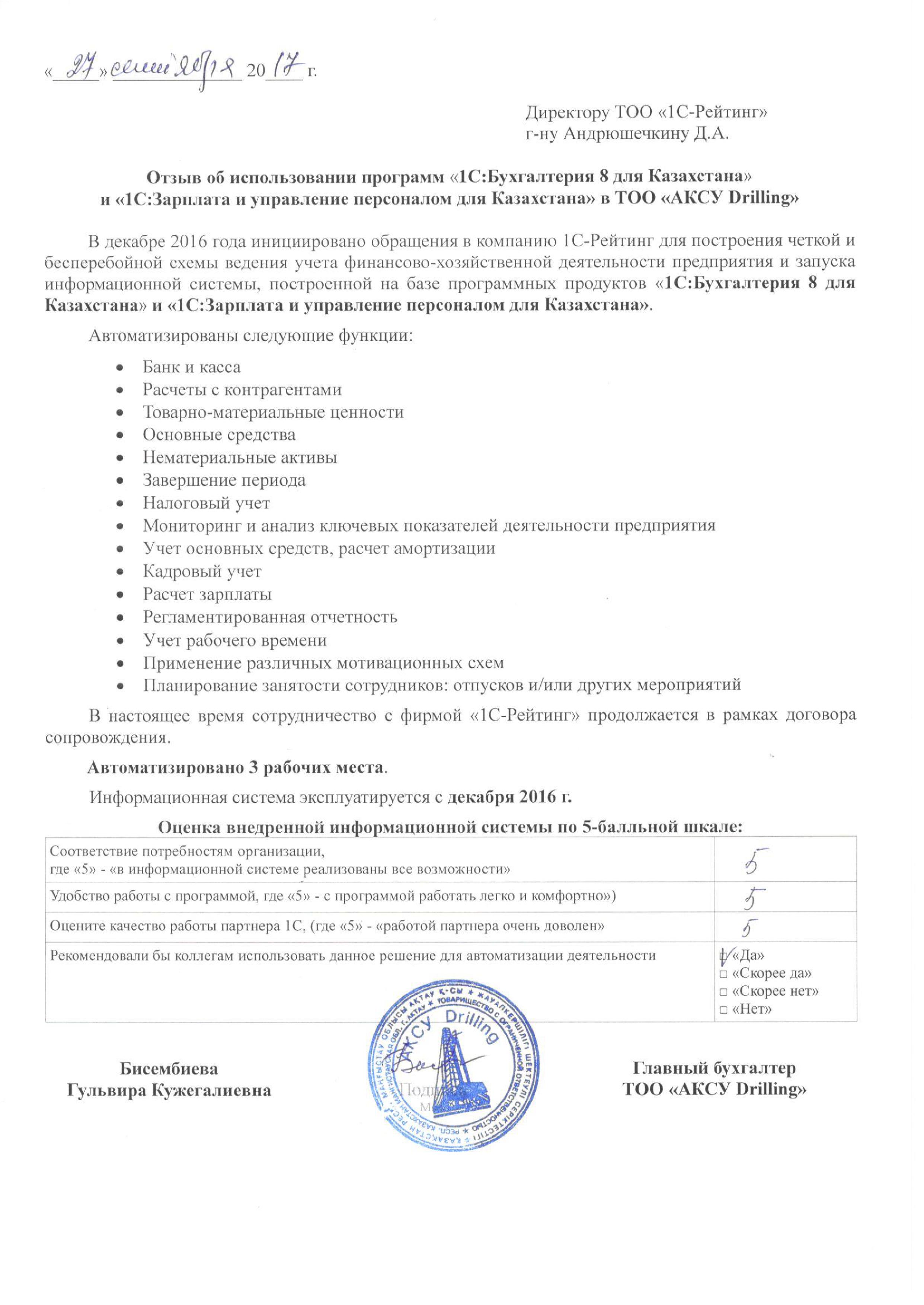| Внедренное типовое решение: | 1С:Бухгалтерия для Казахстана