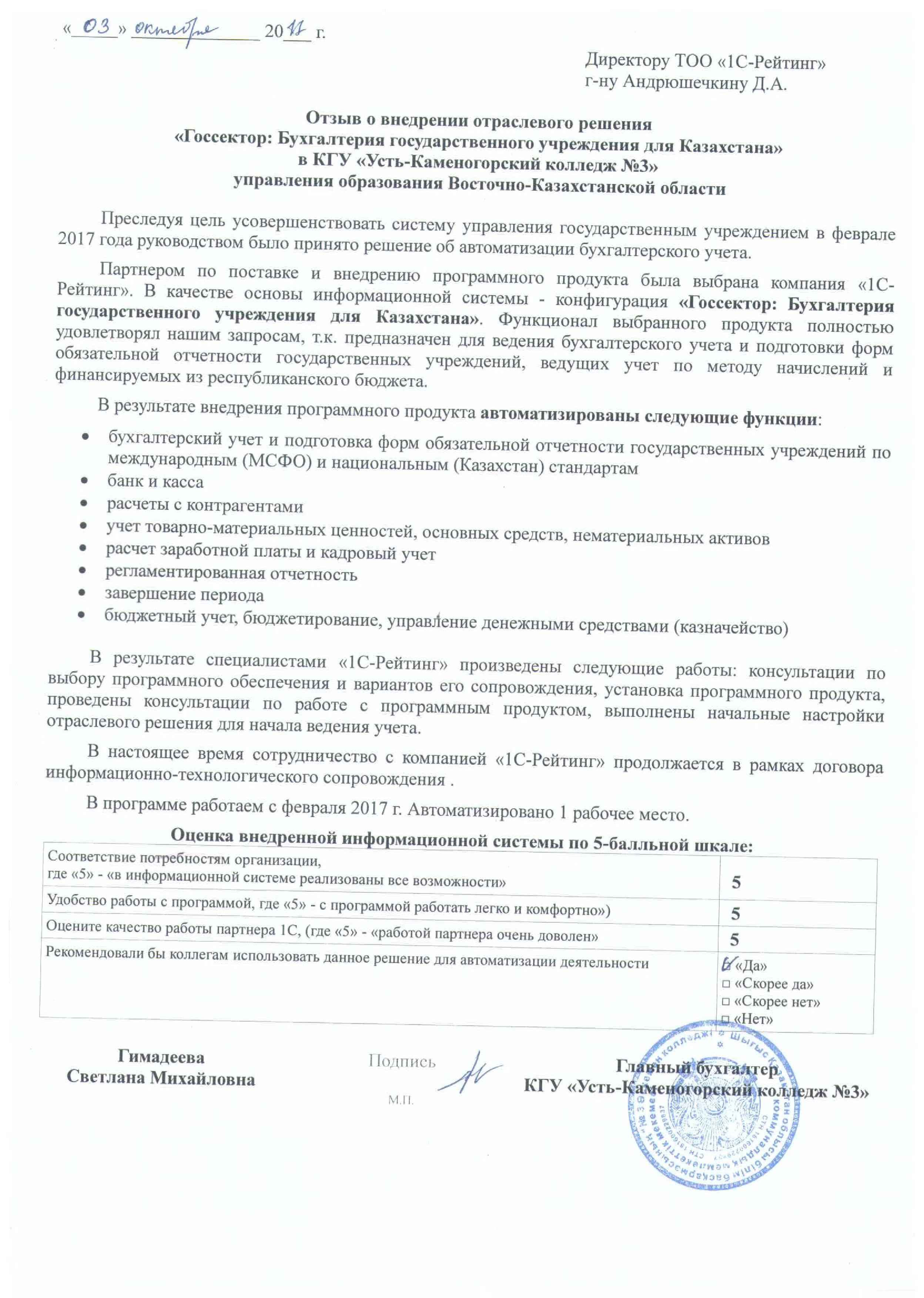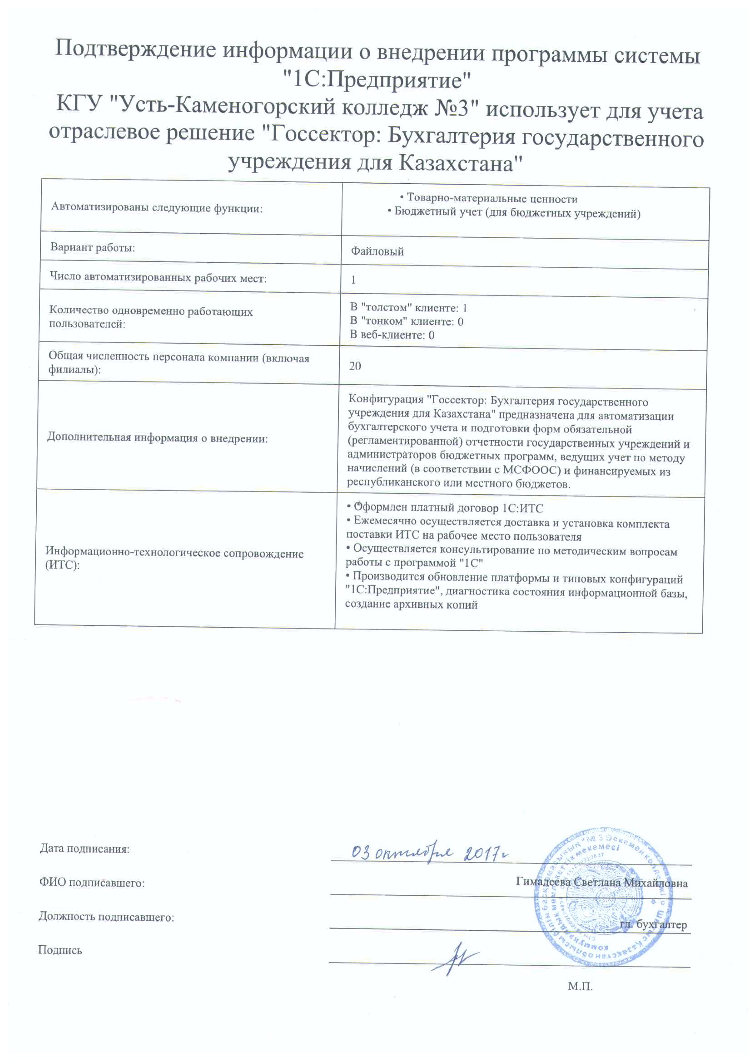 | Внедренное отраслевое решение: | Госсектор: Бухгалтерия государственного учреждения для Казахстана |