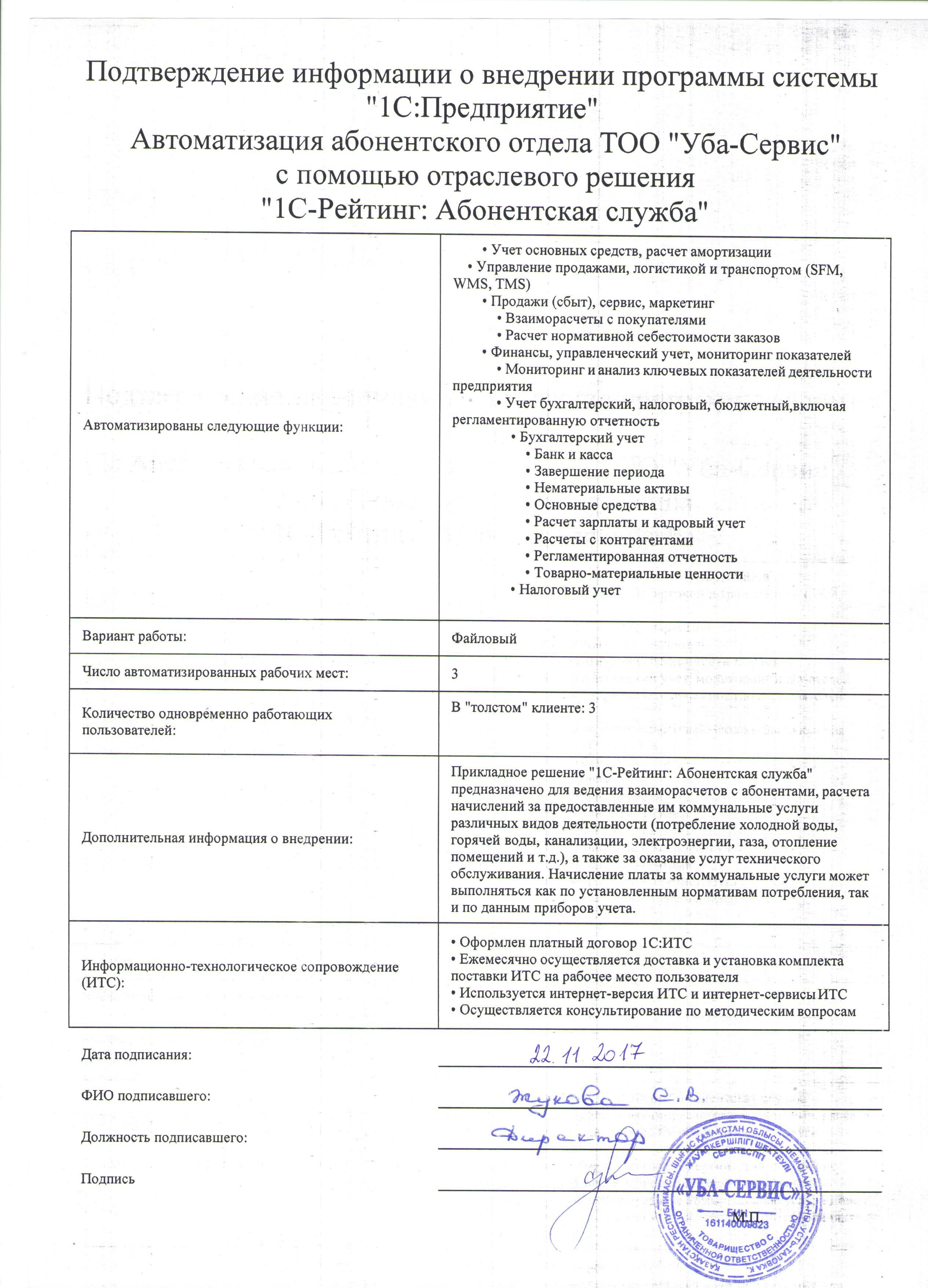 | Внедренные решения: | 1С-Рейтинг: Абонентская служба |