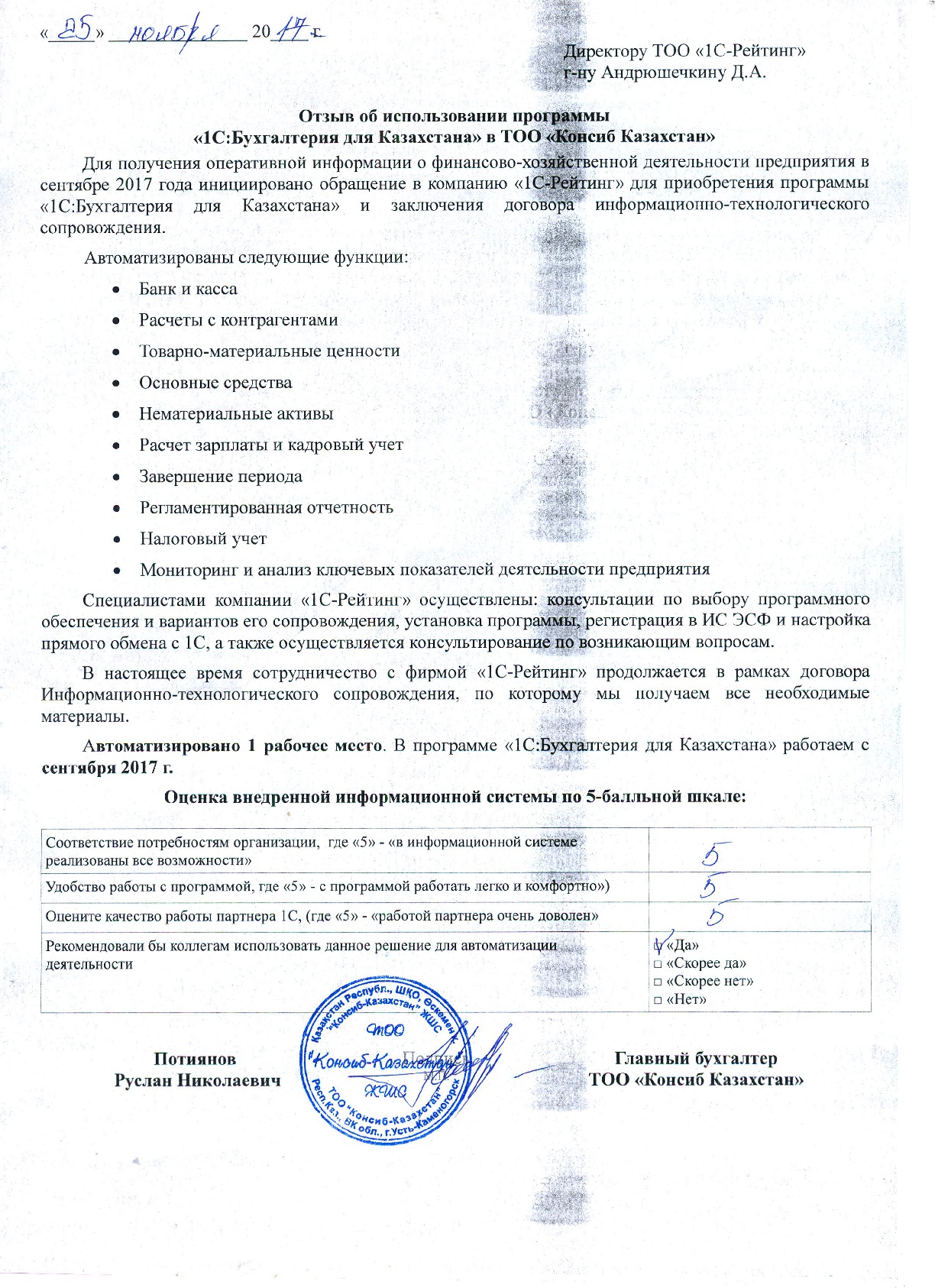 | Внедренное типовое решение: | 1С:Бухгалтерия 8 для Казахстана |