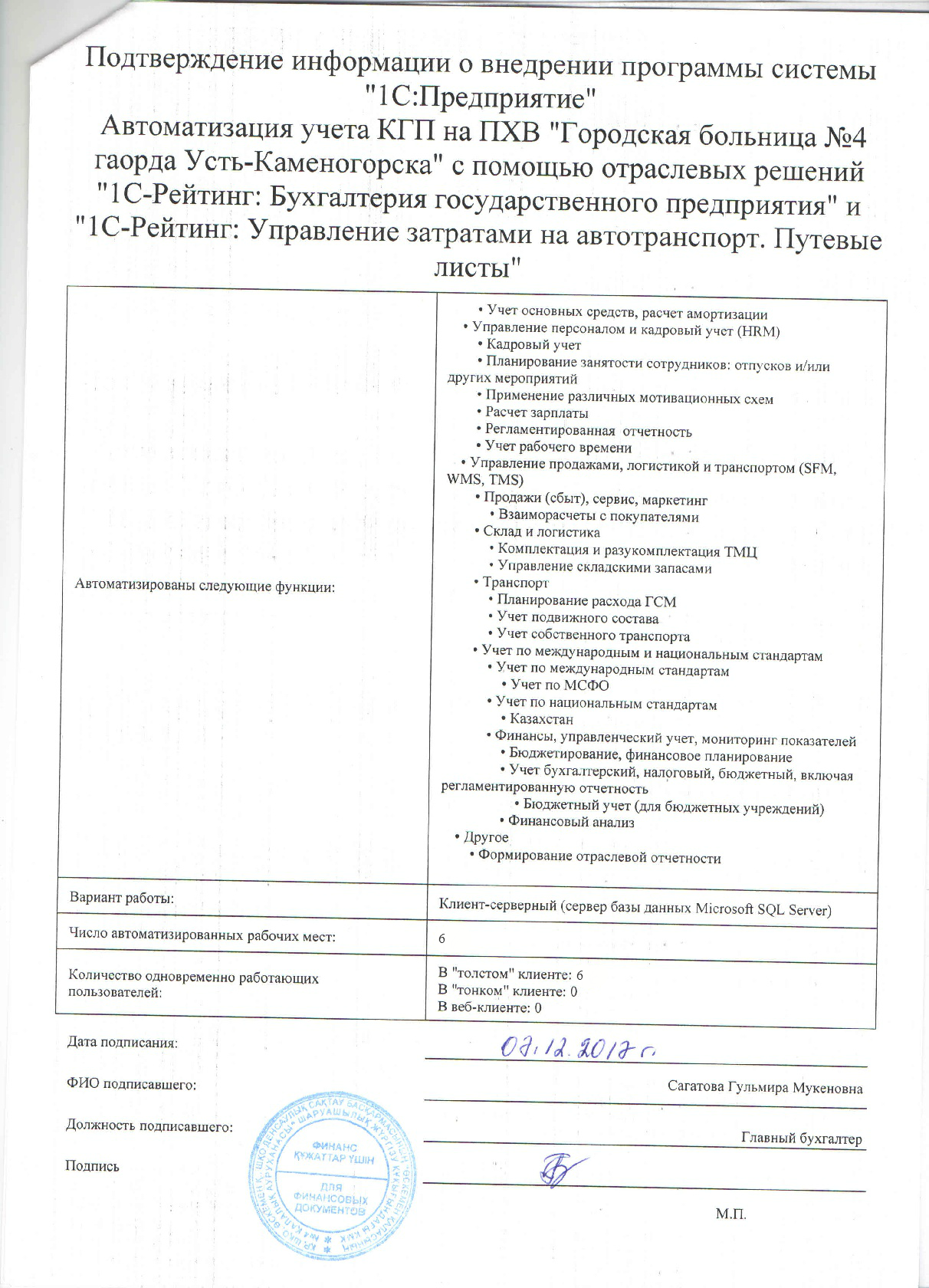 - Ежемесячно производятся работы по обновлению платформы и типовых конфигураций, диагностика состояния информационной базы, создание архивных копий