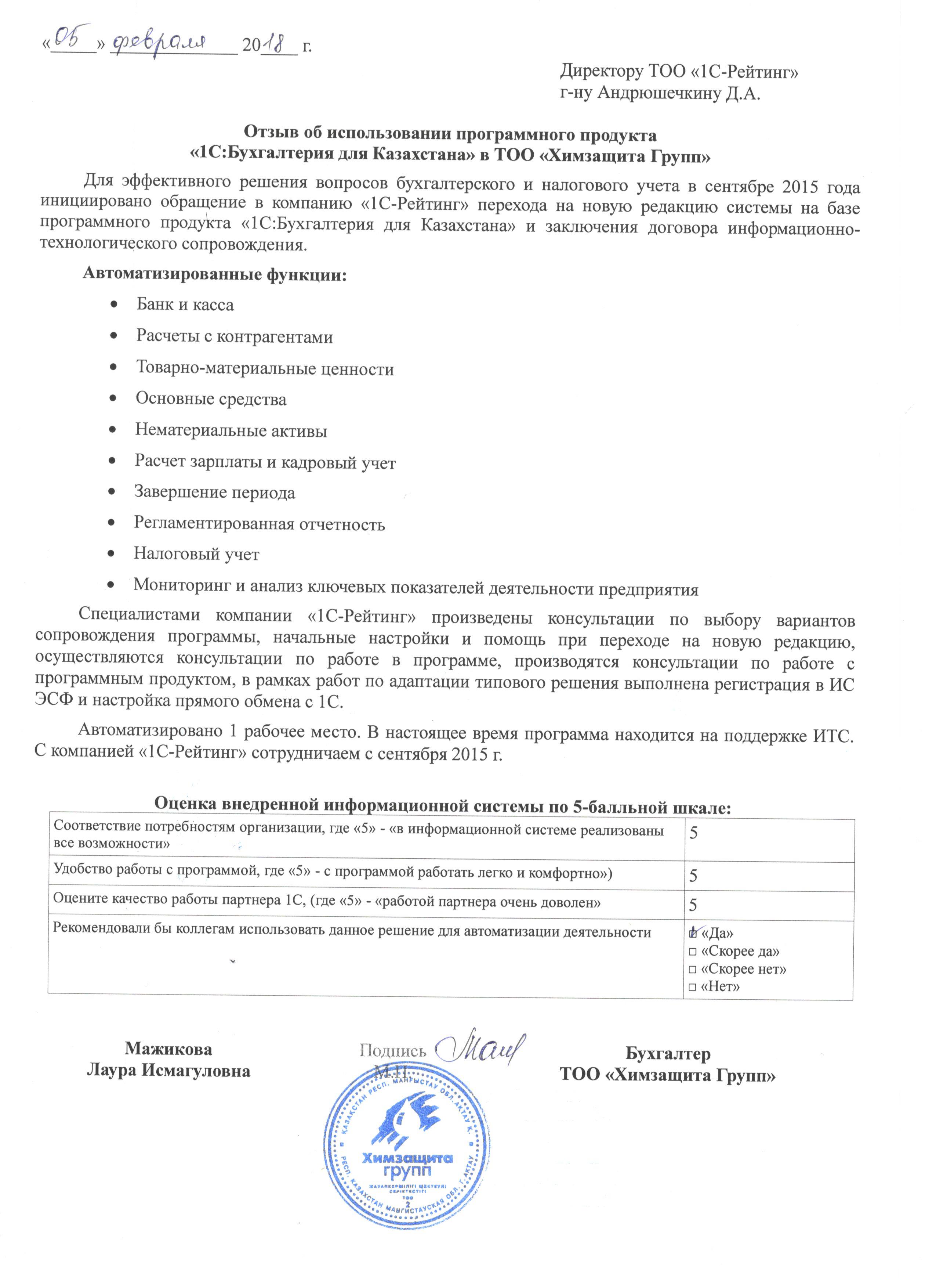 | Внедренное типовое решение: | 1С:Бухгалтерия 8 для Казахстана |