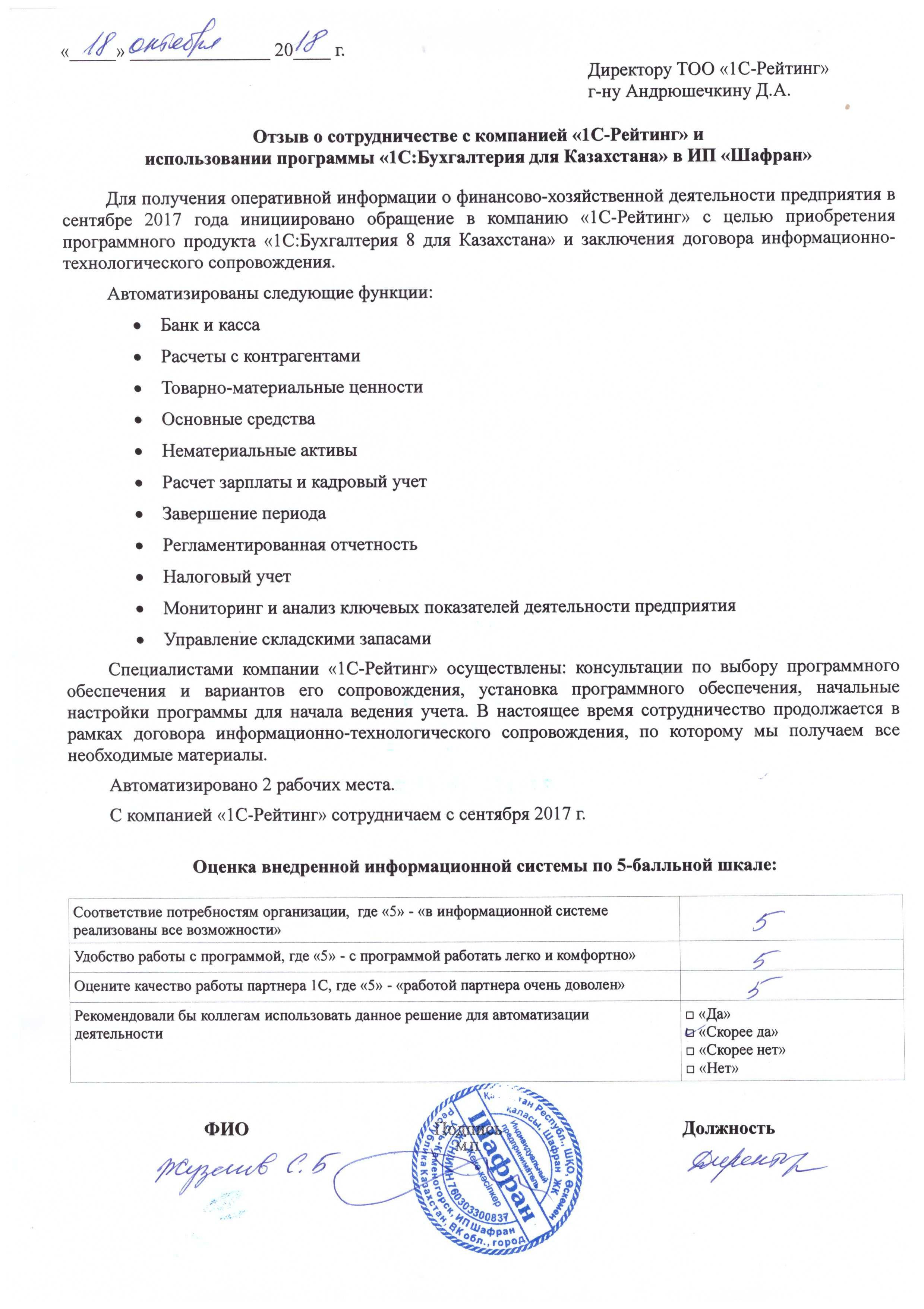 ИП «Шафран (Жузенов Съездхан Бегимшеевич)»