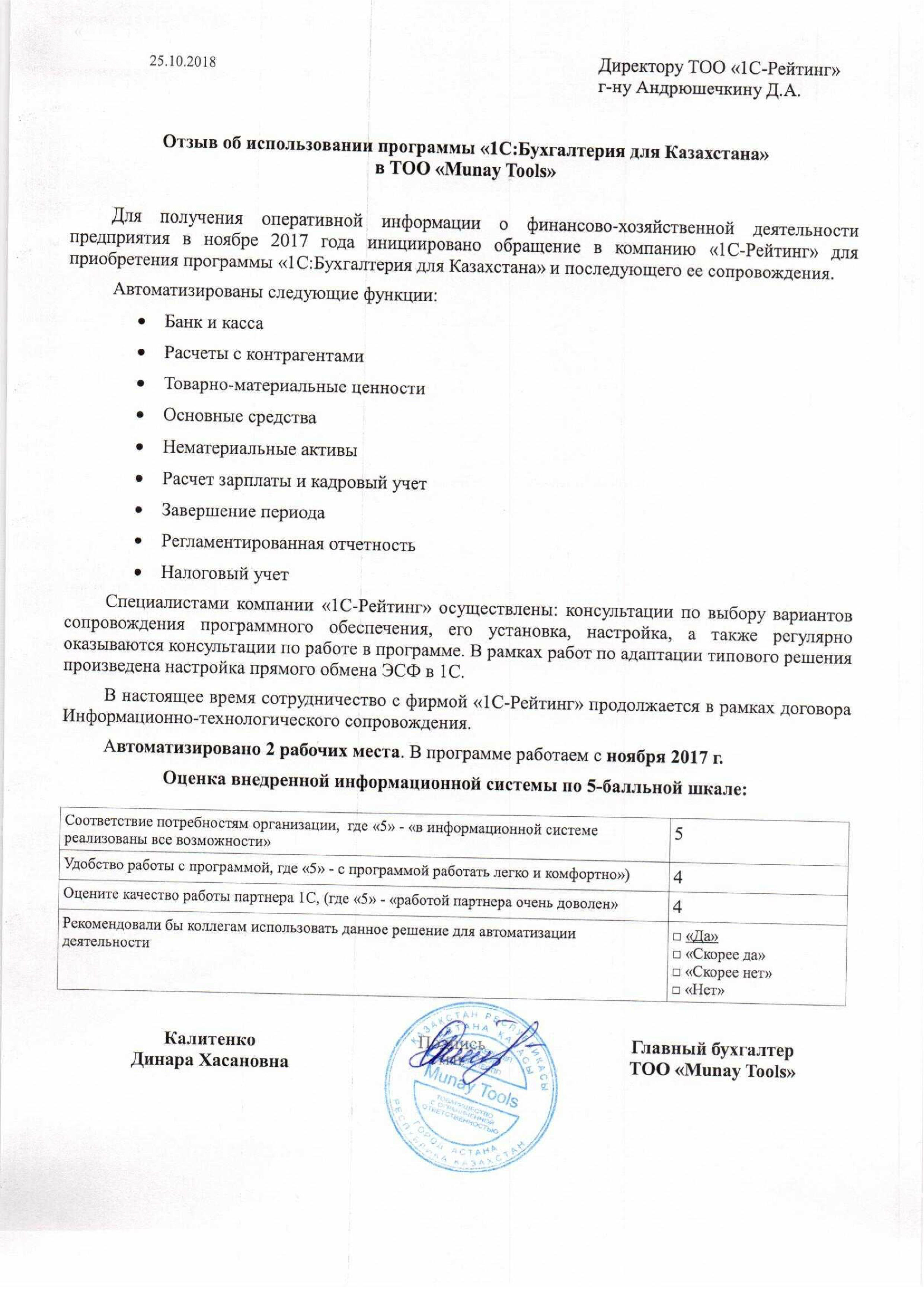 Внедрение «1C:Бухгалтерия 8 для Казахстана» в ТОО «Munay Tools»