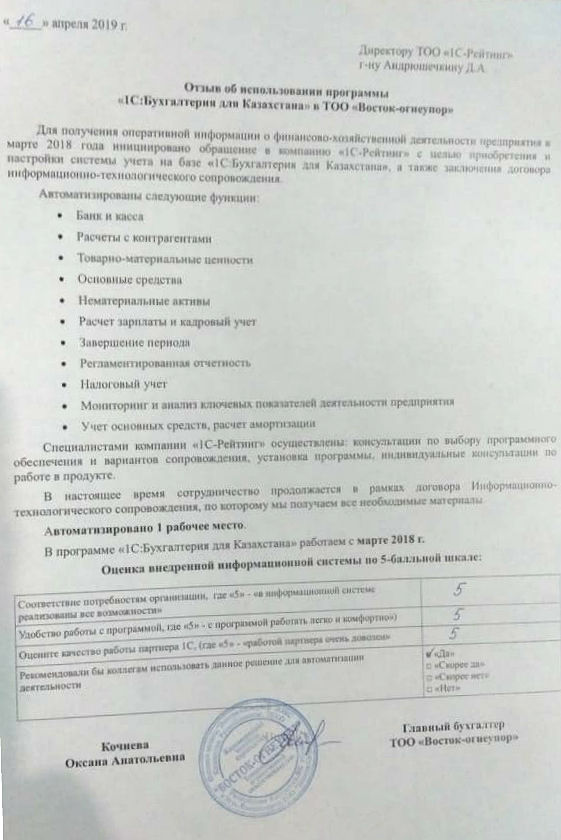 | Внедренное типовое решение: | 1С:Бухгалтерия 8 для Казахстана |