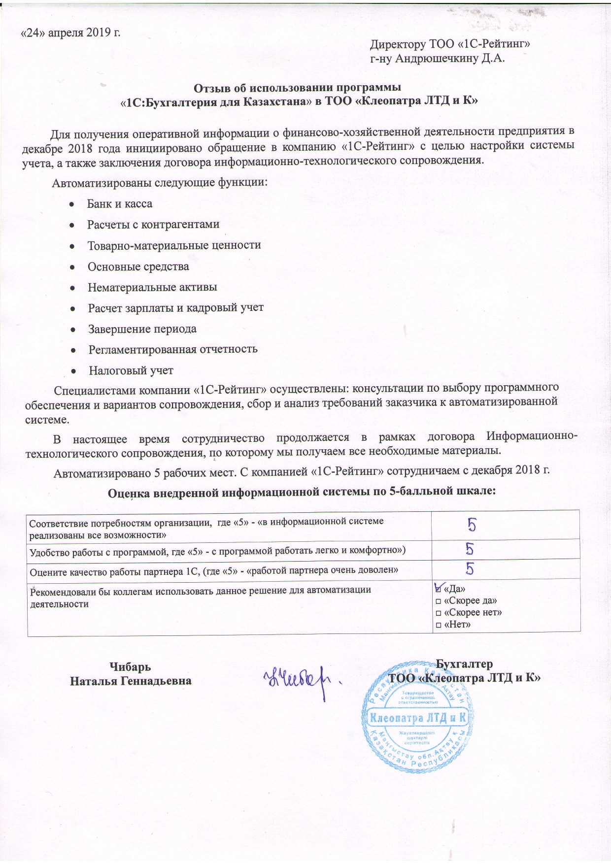 | Внедренное типовое решение: | 1С:Бухгалтерия 8 для Казахстана |
