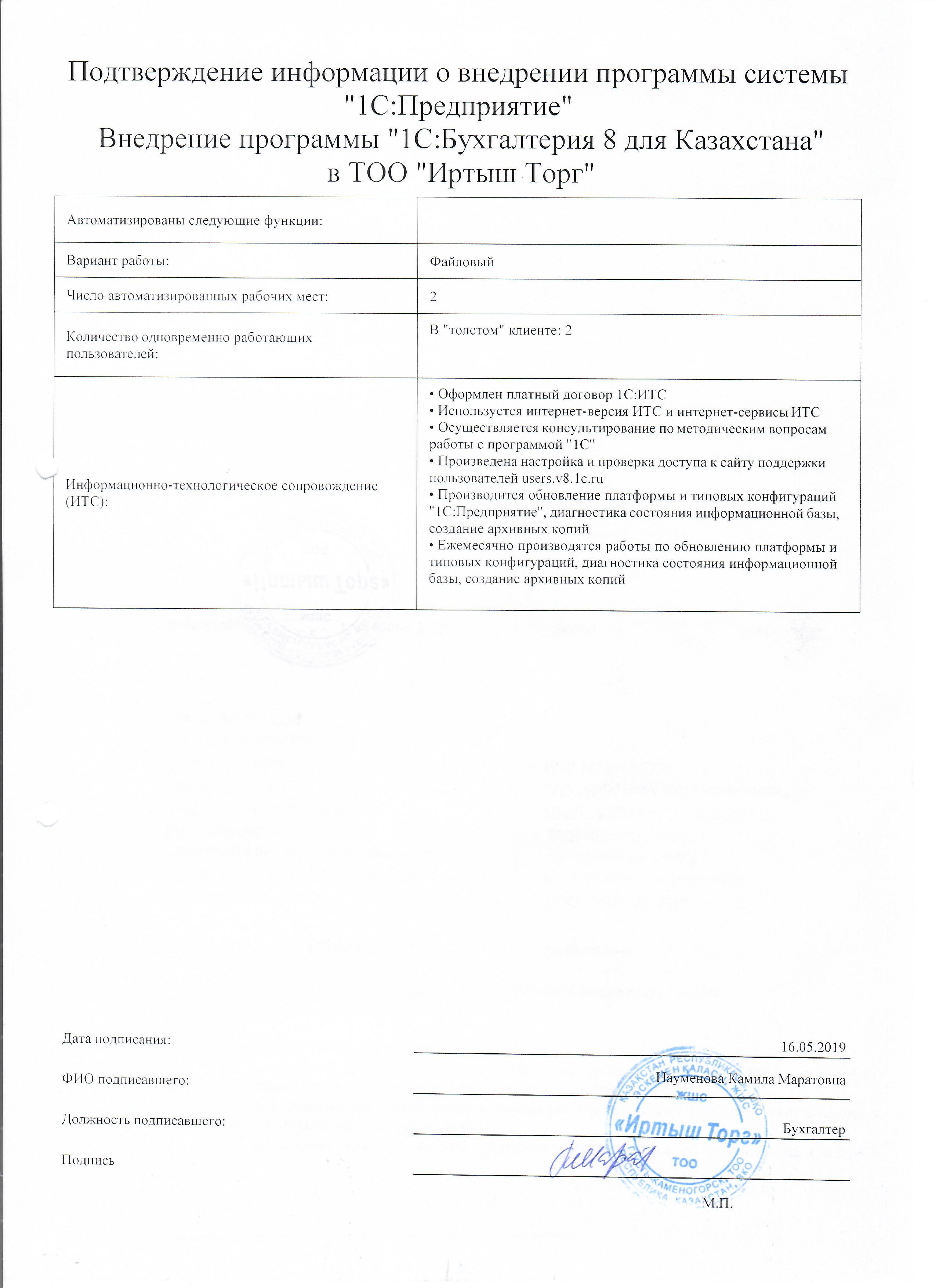 | Внедренное типовое решение: | 1С:Бухгалтерия 8 для Казахстана |