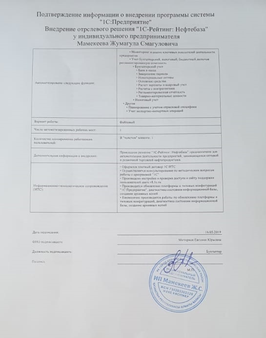 | Внедренное отраслевое решение: | 1С-Рейтинг: Нефтебаза |