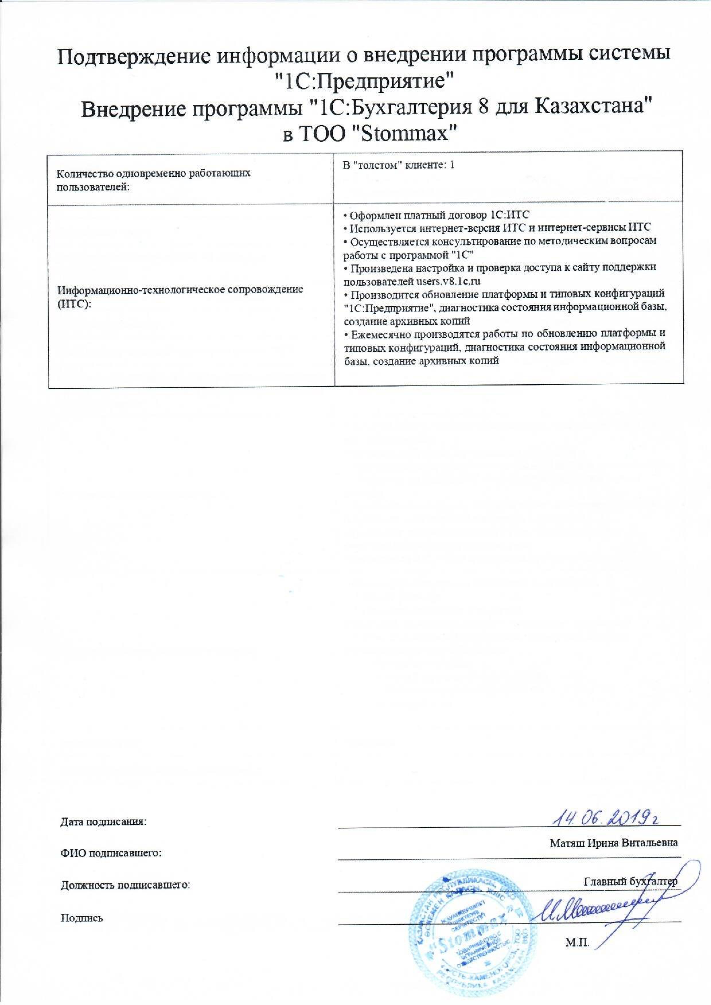 | Внедренное типовое решение: | 1С:Бухгалтерия 8 для Казахстана |