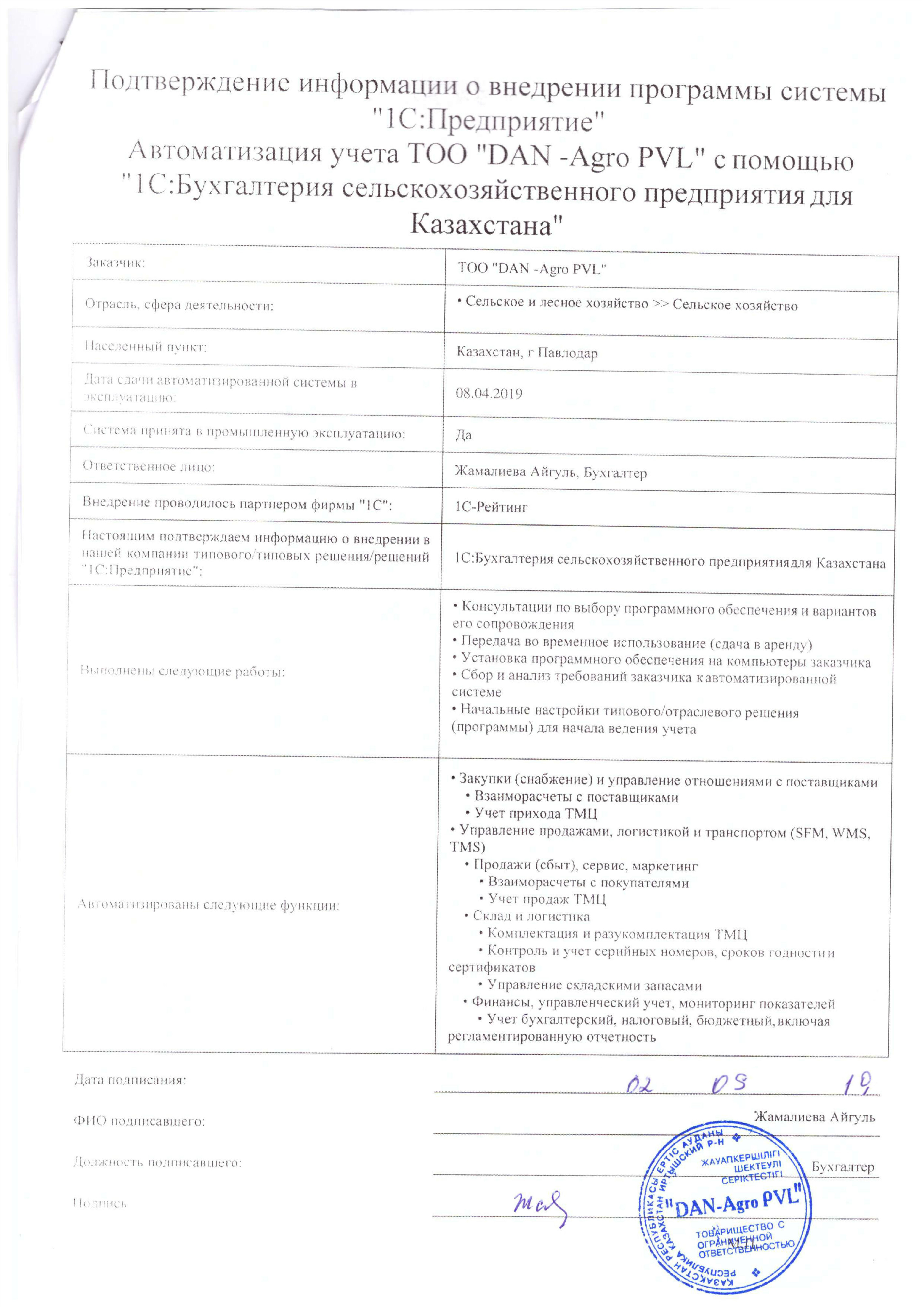 | Арендованное отраслевое решение: | 1С:Бухгалтерия сельскохозяйственного предприятия для Казахстана |