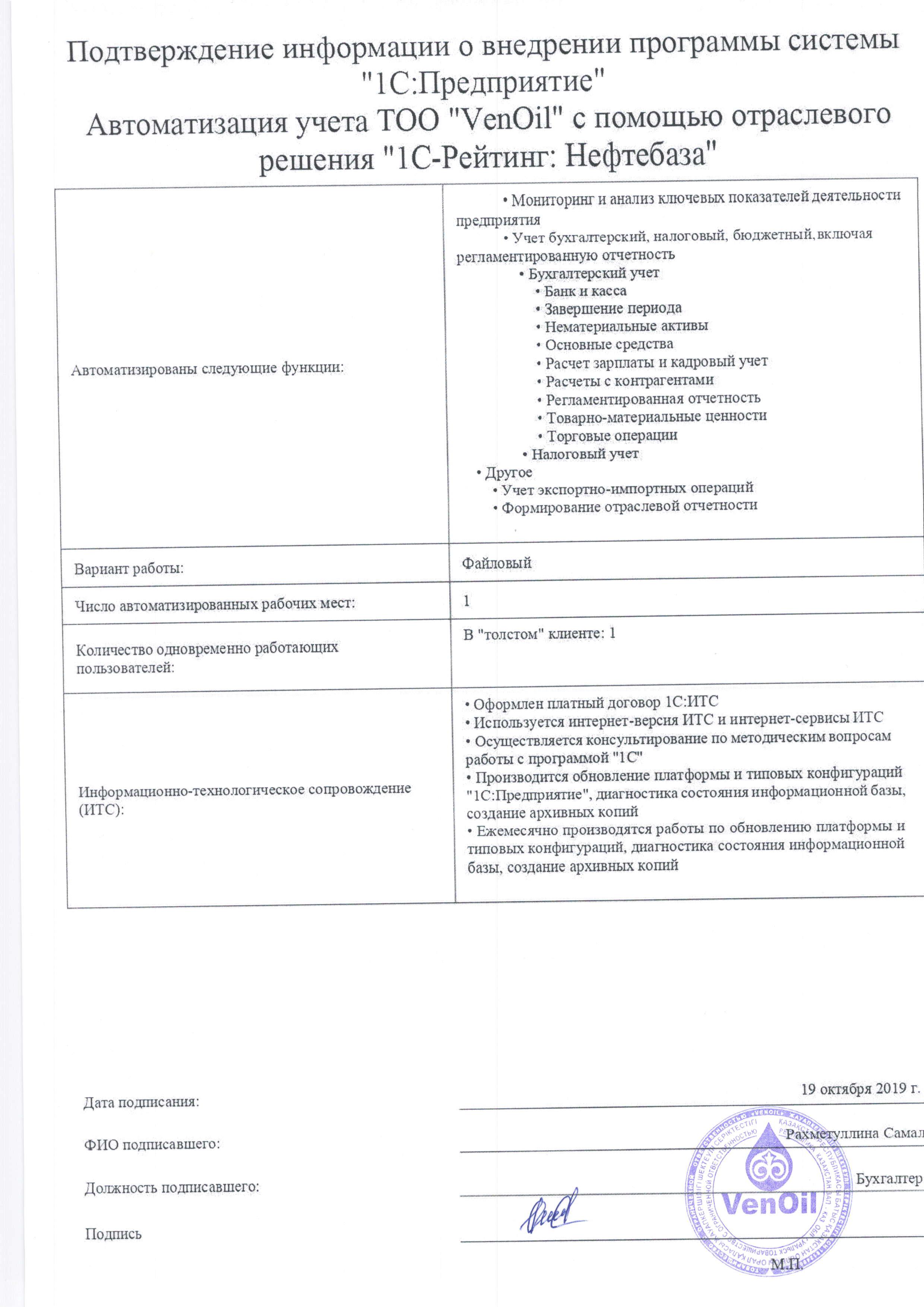 | Внедренное отраслевое решение: | 1С-Рейтинг: Нефтебаза |