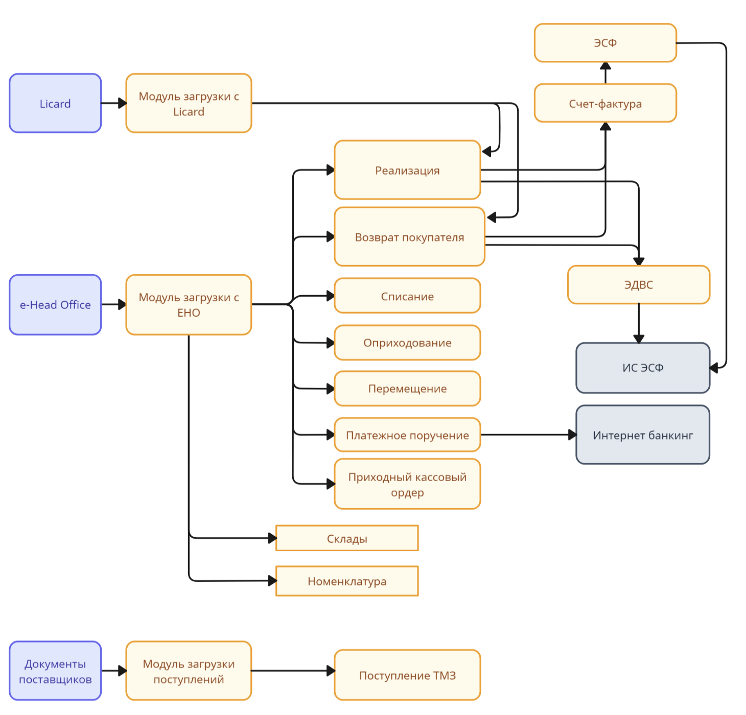 • кастомизировано формирование электронных документов виртуального склада.