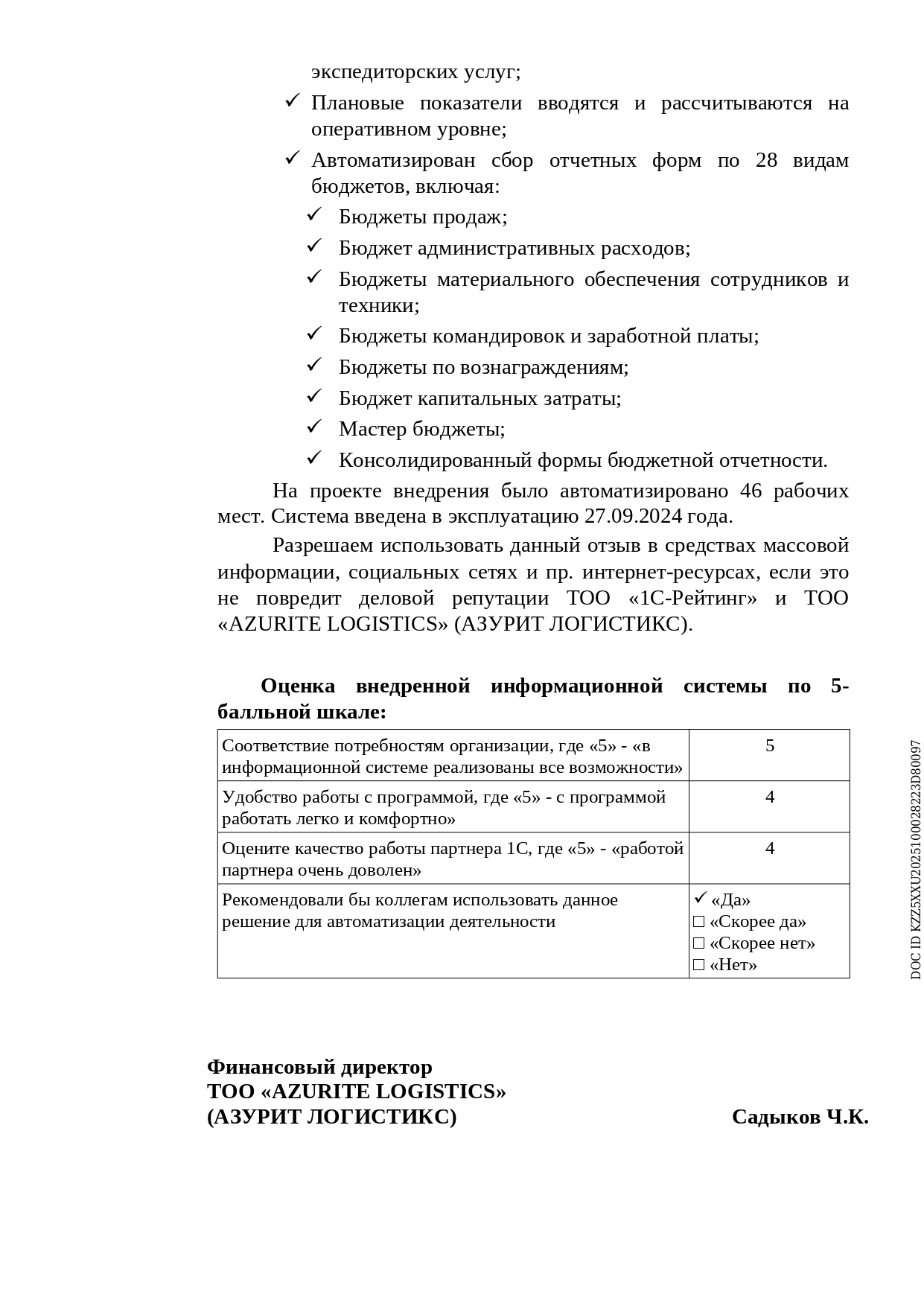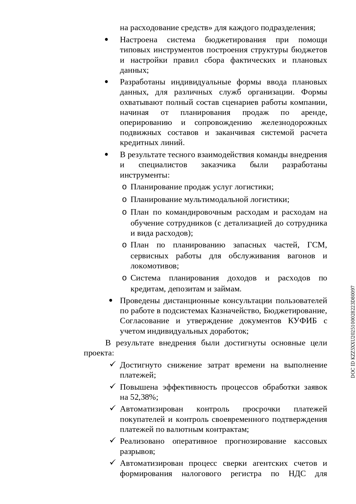 - Настроены профили и группы доступа пользователей для работы в подсистемах Казначейство, Бюджетирование, Согласование и утверждение документов КУФИБ с учетом индивидуальной кастомизации