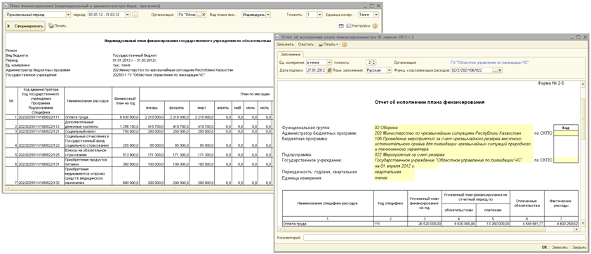«Госсектор: Бухгалтерия государственного учреждения для Казахстана» предоставляет возможность регистрировать индивидуальные планы финансирования государственных учреждений по обязательствам и по платежам, планы финансирования администраторов бюджетных программ, а также вести учет вносимых в планы финансирования изменений.