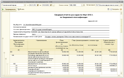 Для обеспечения контроля над расходованием бюджетных средств, а также проведения сверки бухгалтерских записей по счетам учета плановых назначений с территориальными подразделениями казначейства, предусмотрено формирование отчета формы 4-20 «Сводный отчет по расходам».