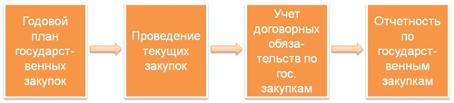Учетную цепочку процесса государственных закупок, можно представить в виде следующей схемы: