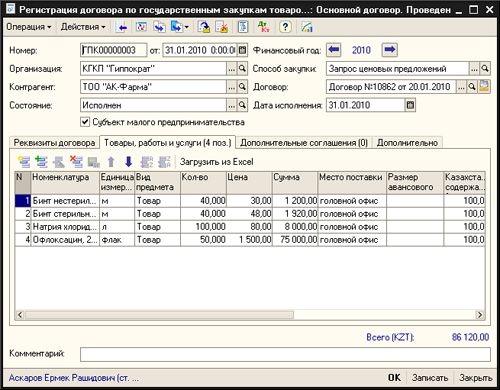 Регистрация и отслеживание исполнения договоров по государственным закупкам