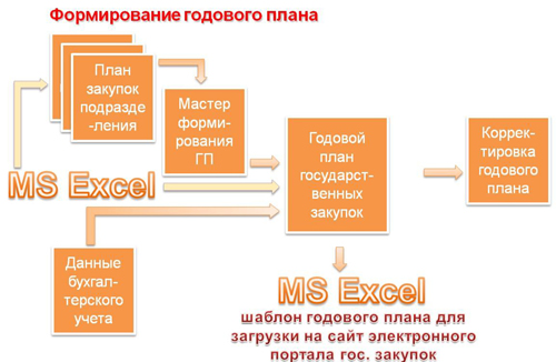- Организация процесса формирования и подачи годового плана государственных закупок: