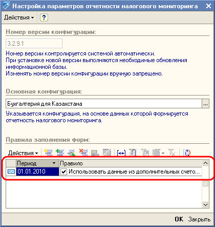 Значение свойства устанавливается в табличном поле «Правила заполнения форм» на определенную дату, начиная с которой установленное правило начнет действовать.