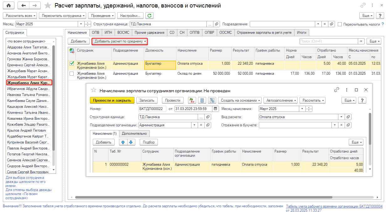 Так, расчет начислений по средней заработной плате (оплата больничного листа, оплата отпуска, оплата компенсации при